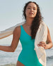 Designed with a beautiful textured fabric. this shaping one-piece was created to flatter every body. Featuring a unique design with flexible layers that target your core and a soft plunge neckline for a feminine fit. this style is equally as chic as it is sun and swim-friendly.